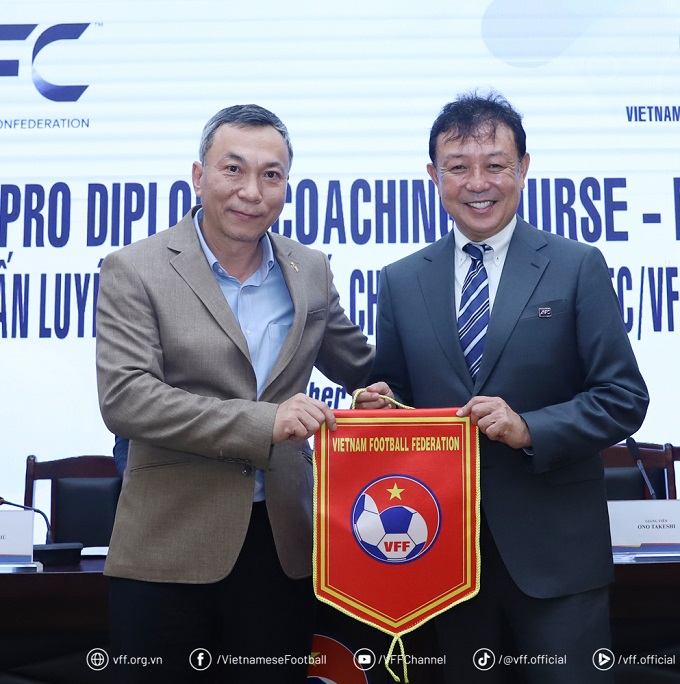 Về phía AFC, ông Takeshi Ono – Phó Giám đốc Kỹ thuật AFC nhấn mạnh rằng ngày hôm nay không chỉ là thời điểm khép lại khóa đào tạo huấn luyện viên bóng đá chuyên nghiệp Pro/AFC/VFF, mà còn là điểm khởi đầu cho một hành trình hoàn toàn mới đối với mỗi huấn luyện viên. Ông Takeshi Ono khẳng định mỗi học viên đều là một phần quan trọng trong việc kiến tạo tương lai của bóng đá Việt Nam, đồng thời bày tỏ kỳ vọng các huấn luyện viên sẽ tiếp tục phát huy những kiến thức, giá trị đã được trang bị để đóng góp tích cực cho sự phát triển của bóng đá nước nhà trong thời gian tới.