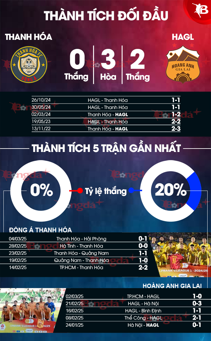Được chơi trên sân nhà nhưng thành tích đối đầu kém cỏi trước HAGL là lời cảnh báo có sức mạnh với Thanh Hóa. Có thể thấy, lý do khiến đội bóng xứ Thanh không thể thắng trong thời gian qua là do khâu săn bàn. Ở 4 trận gần nhất, Thanh Hóa chỉ có 1 bàn thắng nên chỉ cần thủng 1 bàn là coi như mất ít nhất 2 điểm. HAGL không còn mạnh ở hàng thủ, lại vắng trung vệ Jairo, nên nếu chủ nhà không thể phá dớp 10 trận không thắng trước HAGL, thì họ nên tự trách mình.