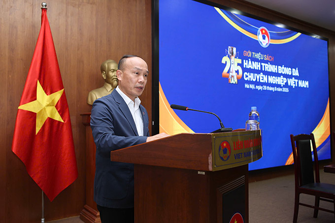 Nhà báo Doãn Hữu Bình - Phó Giám đốc Trung tâm TTTT TDTT bày tỏ niềm vinh dự khi được tham gia đồng hành trong việc tham gia thực hiện cuốn sách. “Từ năm 2000, khi bóng đá chuyên nghiệp chính thức khởi động tại Việt Nam, chúng ta đã đi qua nhiều chặng đường với những khó khăn, thử thách nhưng cũng đầy vinh quang và tự hào. 25 năm - không chỉ là con số thời gian, mà còn là hành trình cống hiến của biết bao thế hệ cầu thủ, huấn luyện viên, các câu lạc bộ, nhà quản lý và cả người hâm mộ cả nước”, nhà báo Doãn Hữu Bình bày tỏ.
