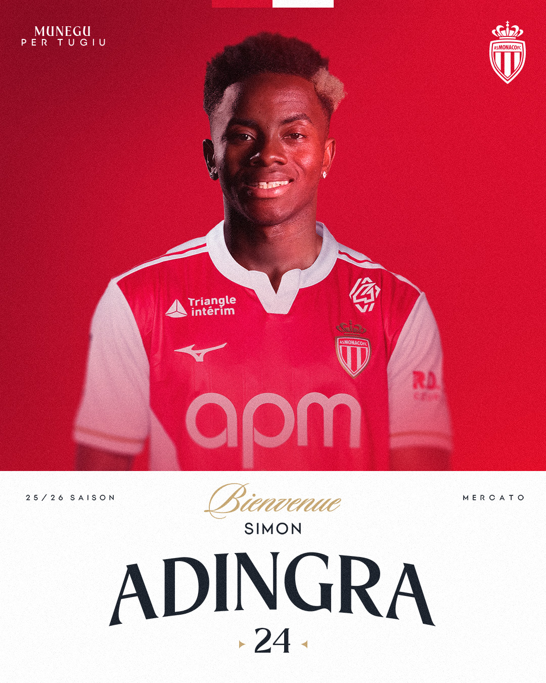 Monaco mượn tiền đạo cánh sinh năm 2002 Simon Adingra đến cuối mùa với khoản phí 1 triệu euro. Nếu Simon chơi tốt, anh sẽ được kích hoạt điều khoản mua đứt giá 17 triệu euro từ Sunderland.