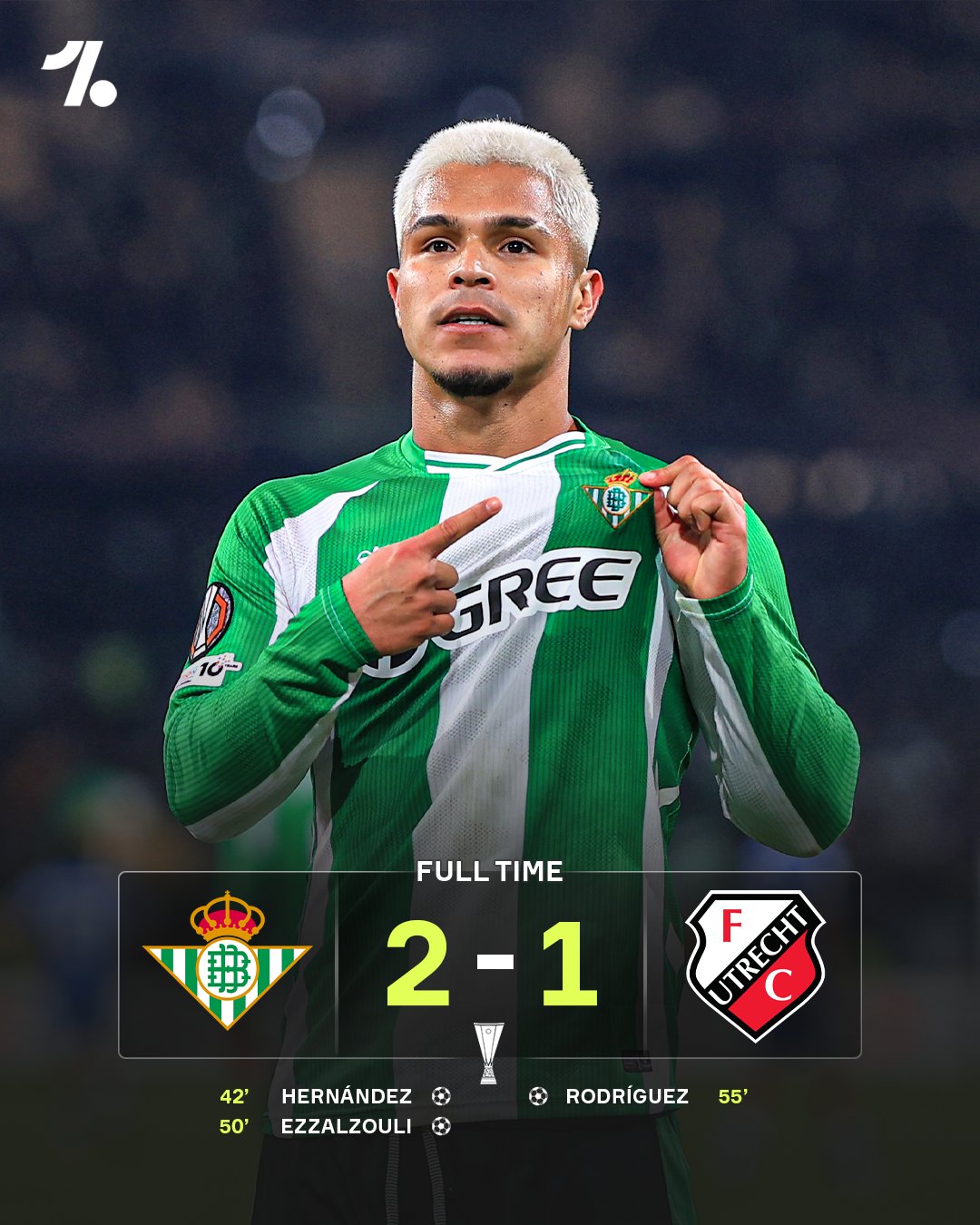 Betis ghi thêm bàn ở phút 50 nhờ cú sút xa đẹp mắt của Abde Ezzalzouli, trước khi Miguel Rodriguez rút ngắn cách biệt cho Utrecht ở phút 55. Dù để đối thủ vùng lên mạnh mẽ cuối trận, Betis vẫn giữ được chiến thắng 2-1. Chiến thắng quan trọng giúp Real Betis có chiến thắng quan trọng, qua đó vươn lên xếp thứ 12 trên BXH Europa League, chỉ kém top 8 có 1 điểm.