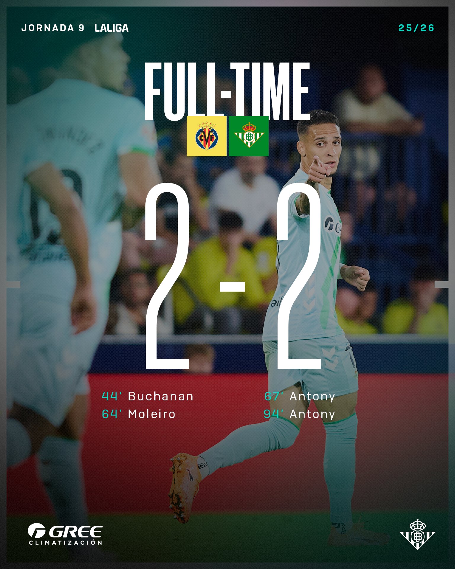 Kịch tính được đẩy lên cao trào ở những phút bù giờ. Khi trận đấu chỉ còn tính bằng giây, ở phút 90+4, Pablo Fornals kiến tạo thông minh để Antony thoát xuống. Cầu thủ từng gây thất vọng ở MU này đã dứt điểm chính xác ấn định tỷ số hòa 2-2 đầy cảm xúc, mang về 1 điểm quý giá cho Real Betis.