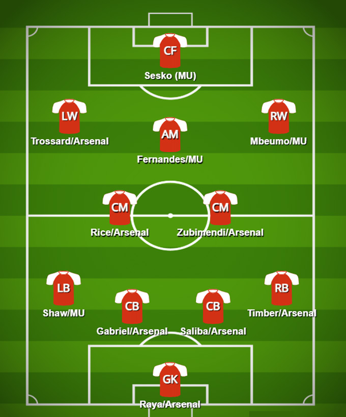 Đội hình kết hợp giữa Arsenal và MU