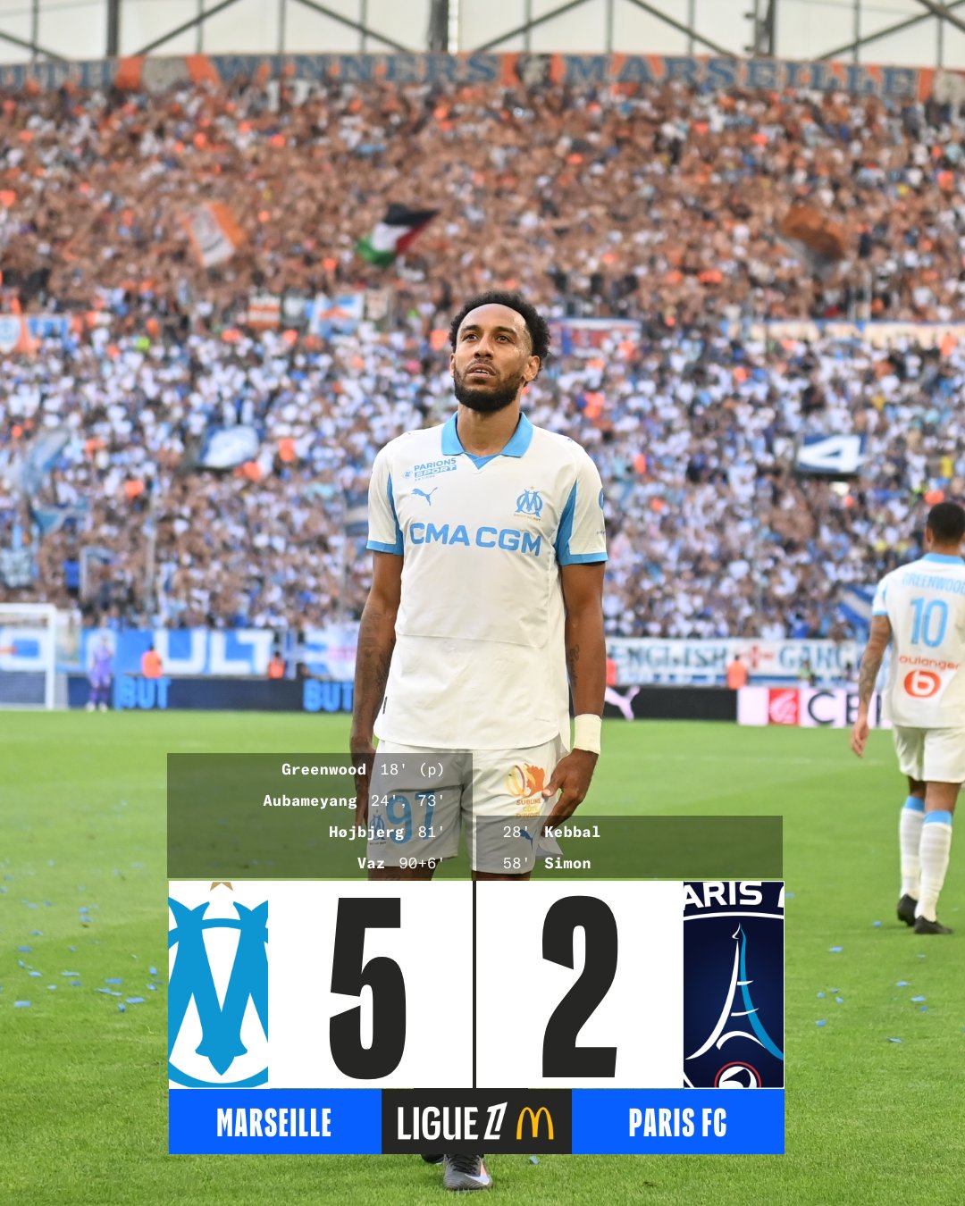 Tiếp đón tân binh Paris FC trên sân Velodrome, thầy trò Roberto De Zerbi quyết tâm có chiến thắng tưng bừng. Ngay từ phút 14, Pierre-Emerick Aubameyang mang về quả phạt đền sau khi bị Otavio phạm lỗi. Trên chấm 11m, Mason Greenwood lạnh lùng dứt điểm mở tỷ số.