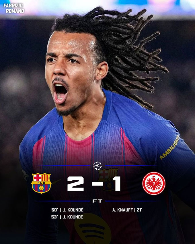 Chung cuộc, Barca giành chiến thắng ngược dòng 2-1 nhưng vẫn chỉ đứng thứ 14 trên BXH. Trong khi đó, Frankfurt tụt xuống thứ 30 và nguy cơ lớn bị loại.