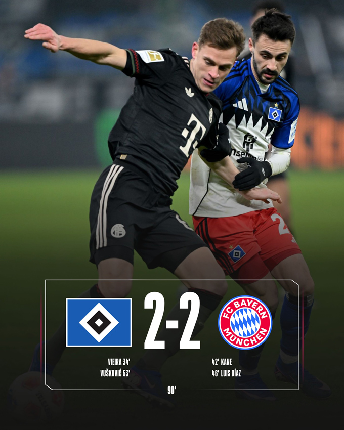 Tuy nhiên tới phút 53, Hamburg đã đưa trận đấu về vạch xuất phát. Vuskovic vượt qua Davies để đón quả tạt của Mikelbrencis, trước khi đánh đầu uy lực gỡ hòa 2-2.