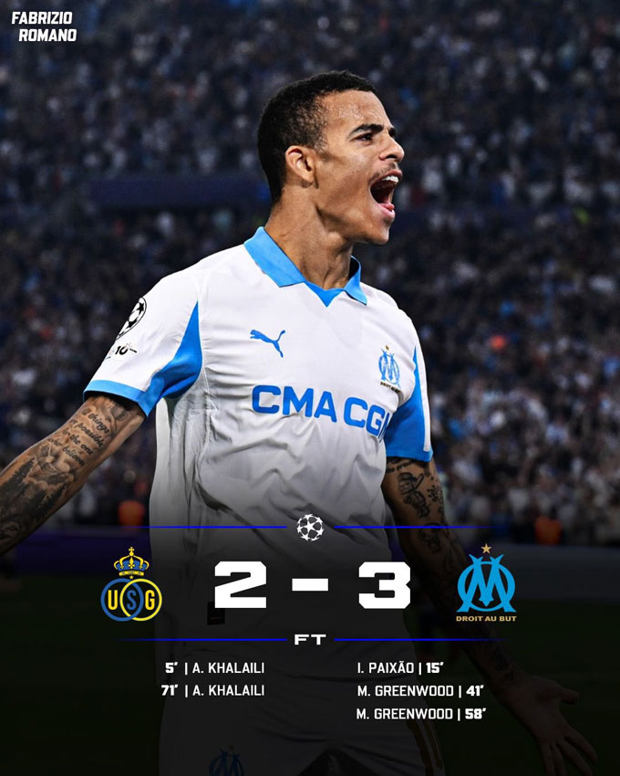 Ở trận đấu giữa Union St.Gilloise vs Marseille. Greenwood chính là nhân vật nổi bật nhất. St.Gilloise mở tỷ số ở phút thứ 5 nhờ công của Khalaili. Nhưng sau đó, lần lượt Paixao (phút 15) cùng Greenwood (phút 41 và 58) đã ghi bàn đưa Marseille dẫn ngược lại 3-1.
