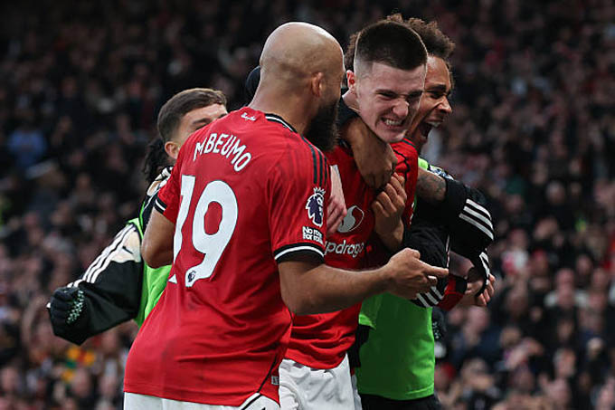 Đúng vào lúc người hâm mộ lo sợ về một trận hòa, Benjamin Sesko đã lên tiếng. Phút 90+4, đón đường chuyền của Bruno Fernandes, chân sút này dứt điểm quyết đoán, ấn định chiến thắng 3-2 cho MU.