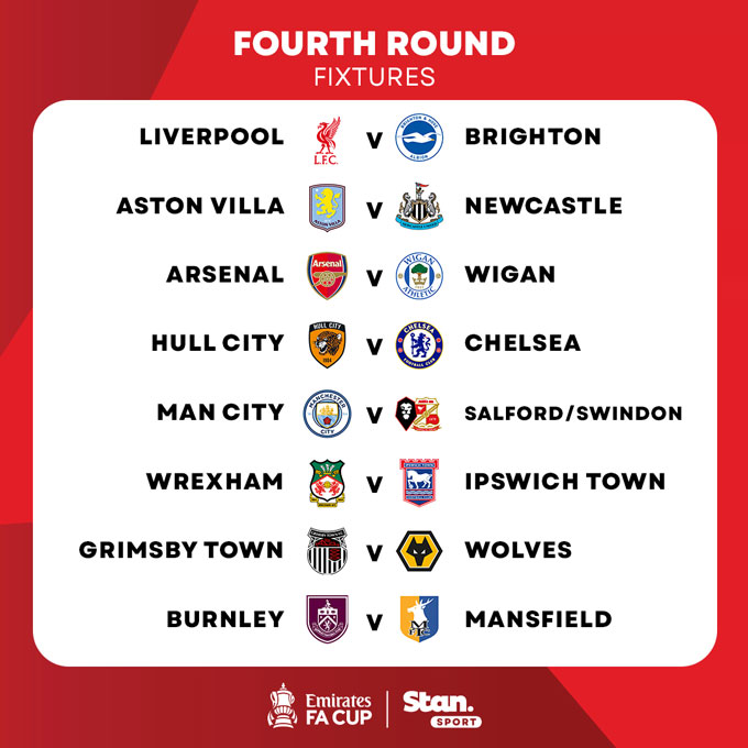Kết quả bốc thăm vòng 4 FA Cup