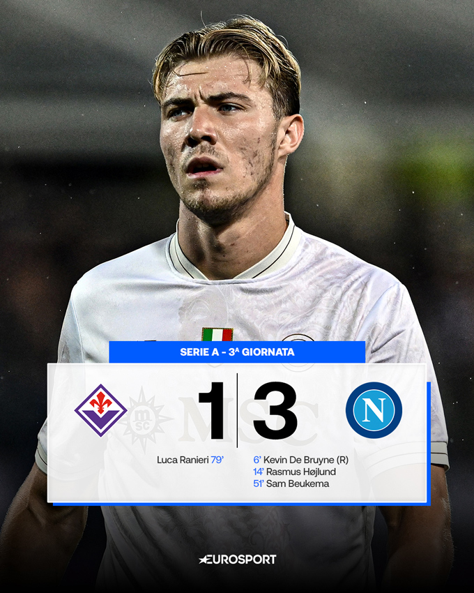 Beukema ghi bàn thứ 3 cho Napoli ở phút 51 trước khi Ranieri ghi bàn danh dự cho Fiorentina ở phút 79. Đại thắng The Viola, Napoli vững vàng ở ngôi đầu với 9 điểm tuyệt đối sau 3 trận toàn thắng.