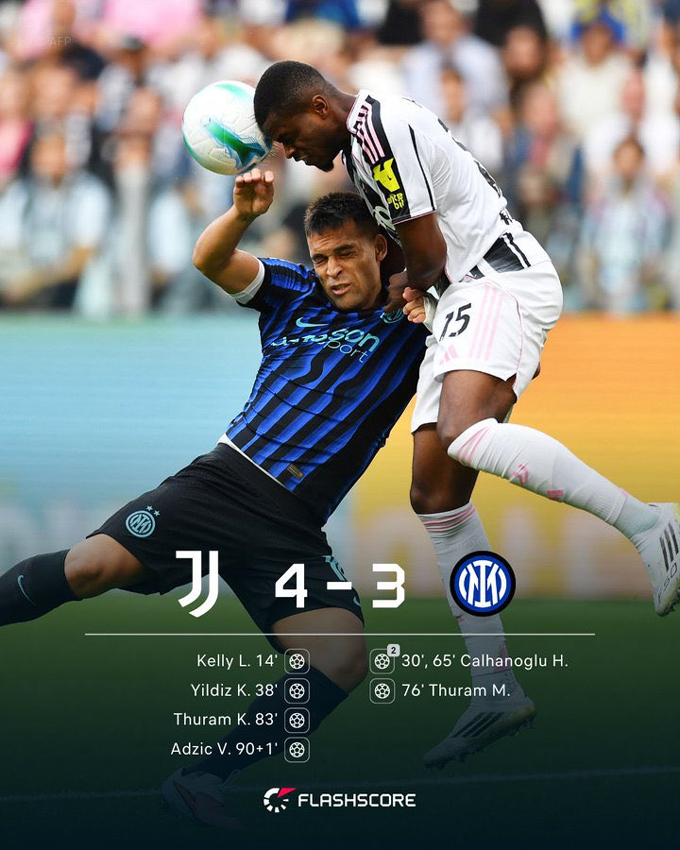 Cũng ở vòng 3 Serie A, Juventus và Inter Milan đã tạo nên một "cơn mưa" với 7 bàn thắng được ghi. Bà đầm già ghi được 4 bàn nhờ công của Kelly, Yildiz, Khephren Thuram và Adzic. Trong khi đó, Calhanoglu (2 bàn) và Marcus Thuram là những người nổ súng cho Nerazzurri.
