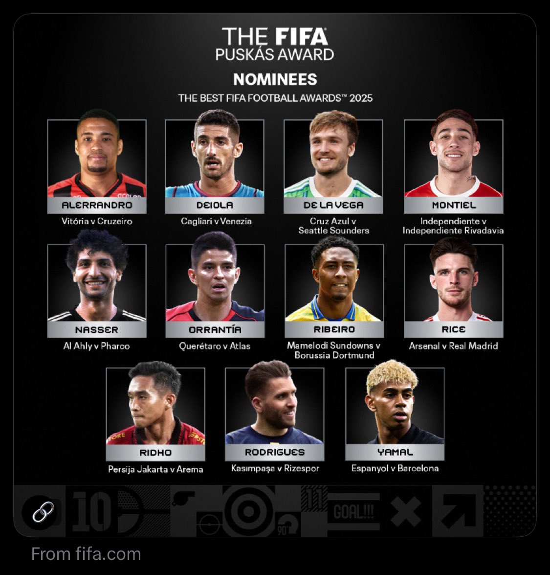 11 ĐỀ CỬ GIẢI PUSKAS 2025 CỦA FIFA