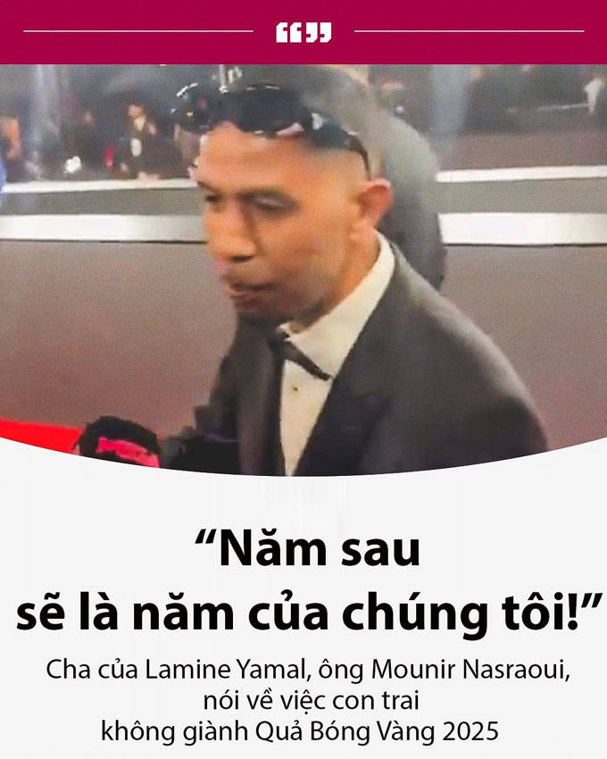 Ông nhấn mạnh rằng Lamine Yamal xứng đáng được vinh danh hơn bất kỳ ai: “Tôi tin Lamine Yamal là cầu thủ xuất sắc nhất thế giới, vượt trội với khoảng cách rất lớn. Không phải vì nó là con tôi, mà bởi vì nó thực sự là người giỏi nhất. Tôi không thấy có đối thủ nào đủ tầm”.