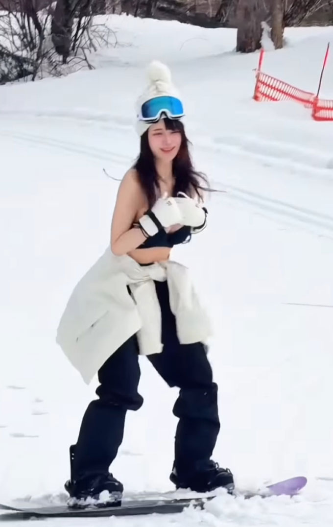 Theo thông tin lan truyền, cô gái trong clip sử dụng T khoản mạng xã hội oh_ichi_. Trong đoạn video, cô không chỉ tạo dáng trước ống kính mà còn di chuyển trên tuyết với phong thái tự tin, nụ cười rạng rỡ dù đang đứng giữa thời tiết âm độ. Chính thần thái thoải mái và vẻ ngoài cuốn hút đã giúp đoạn clip nhanh chóng trở thành hiện tượng.