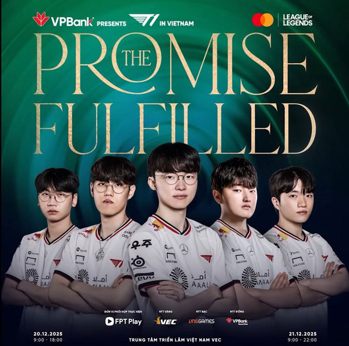 Fan meeting là điểm nhấn trong chuỗi hoạt động thuộc “VPBank presents eSport Festival: Legends Unite”, lễ hội eSports kéo dài hai ngày tại Hà Nội. Người hâm mộ sẽ được tham gia phần hỏi đáp cùng T1, chơi mini game và theo dõi trận showmatch đặc biệt giữa T1 và đội hình các tuyển thủ LMHT Việt Nam, màn đối đầu hứa hẹn tạo nên cơn sốt lớn trong cộng đồng.
