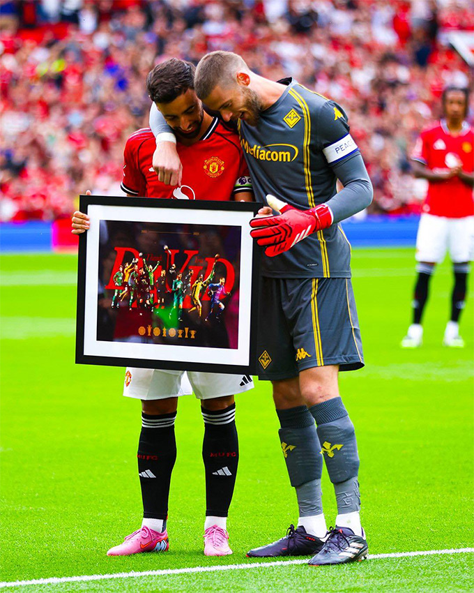 Đội trưởng Bruno Fernandes đã tặng David de Gea một bức ảnh đóng khung để tôn vinh thời gian anh ở Man United trước trận giao hữu của Quỷ đỏ với Fiorentina vào thứ Bảy.