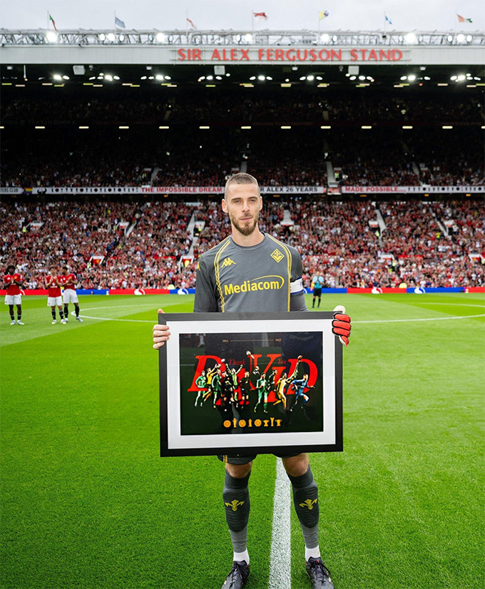 Trận giao hữu giữa Fiorentina và Man United là lần đầu tiên De Gea chơi ở Old Trafford kể từ khi rời đội bóng và câu lạc bộ đã tận dụng cơ hội này để vinh danh cầu thủ người Tây Ban Nha. De Gea đã nhận được sự chào đón nồng nhiệt từ đám đông người hâm mộ Man United và được vỗ tay mỗi khi anh chạm bóng ở những phút đầu tiên.