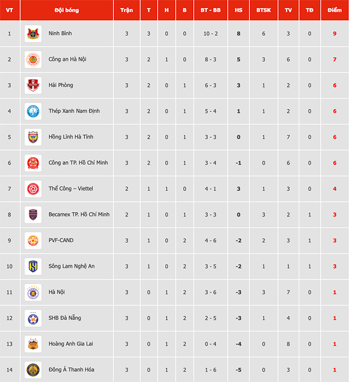 | TT | Đội bóng | Trận | +/- | Điểm |