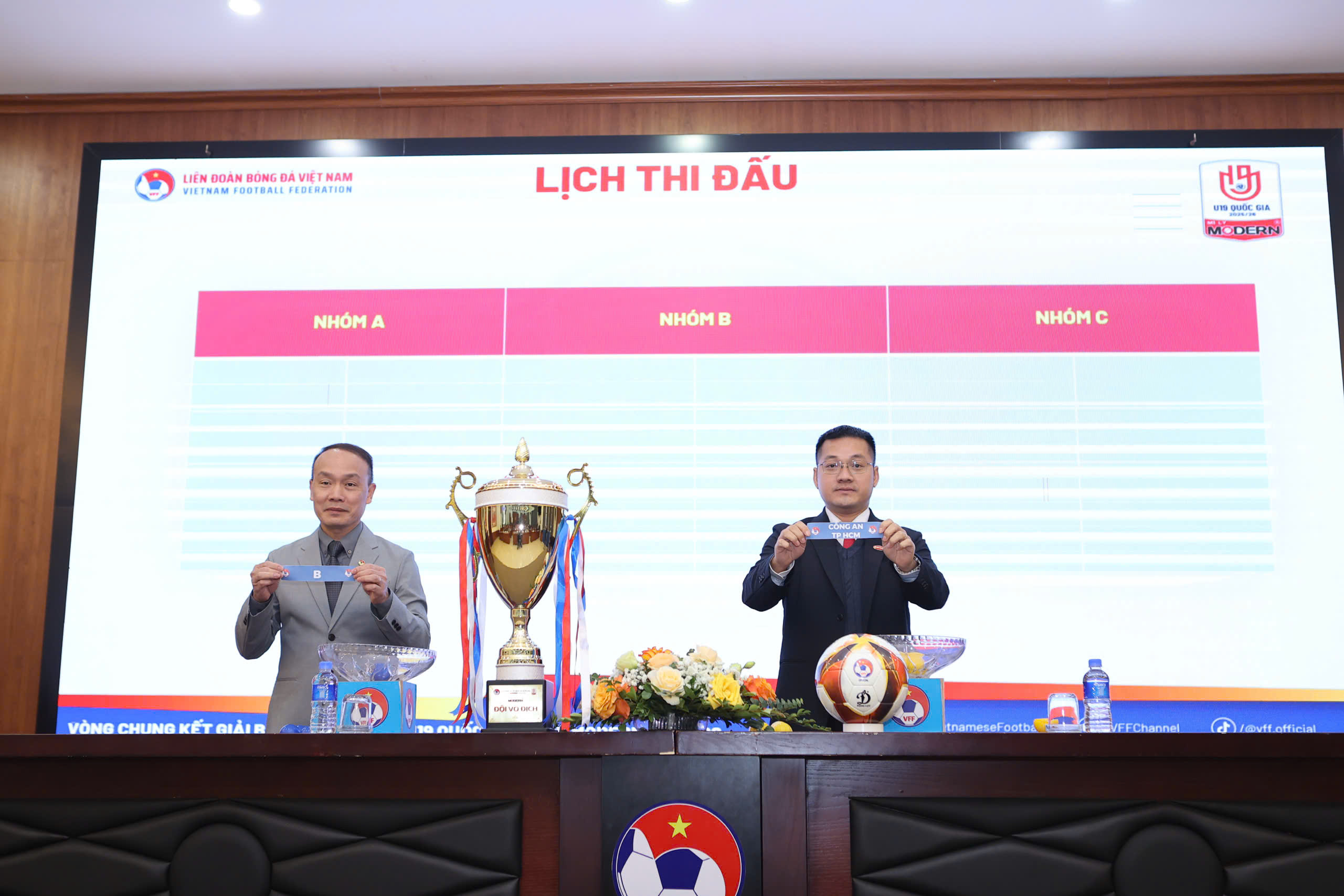 Vòng chung kết giải bóng đá Vô địch U19 quốc gia – Cúp Modern 2025/26 sẽ diễn ra từ ngày 14/1 đến 27/1/2026 tại Trung tâm đào tạo bóng đá trẻ Việt Nam với sự tham dự của 12 đội bóng gồm: Thể Công Viettel I, PVF, PVF-CAND (chủ nhà), Hà Nội, SLNA, Hồng Lĩnh Hà Tĩnh, LPBank HAGL, TP.HCM, SHB Đà Nẵng, Đắk Lắk, Công an TP.HCM và Đồng Tháp. Tại buổi lễ, ban tổ chức đã tiến hành bốc thăm chia bảng cho các đội. Theo đó 12 đội được chia vào ba bảng, thi đấu vòng tròn một lượt tính điểm xếp hạng. Các đội nhất, nhì tại mỗi bảng và hai đội đứng thứ ba có thành tích tốt nhất sẽ giành quyền vào tứ kết.