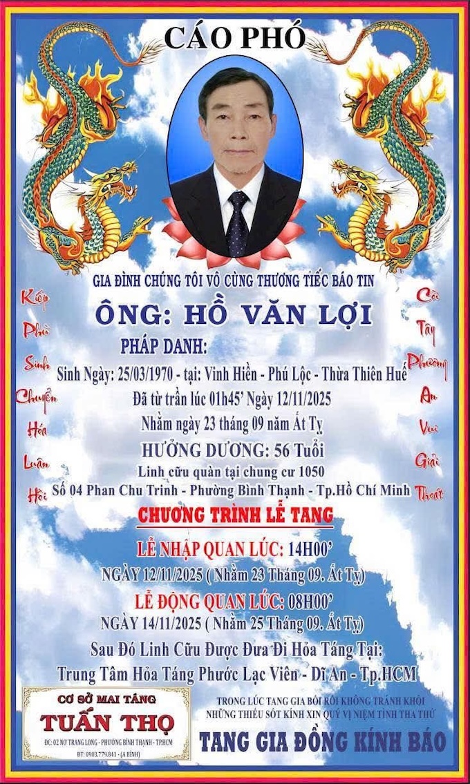 Lúc 1h45 rạng sáng nay 12/11, thông tin cựu danh thủ Hồ Văn Lợi với biệt danh Tiếu già đã ra đi vĩnh viễn ở tuổi 55 khiến rất nhiều đồng nghiệp và những người hâm mộ bóng đá Việt Nam vô cùng tiếc thương.