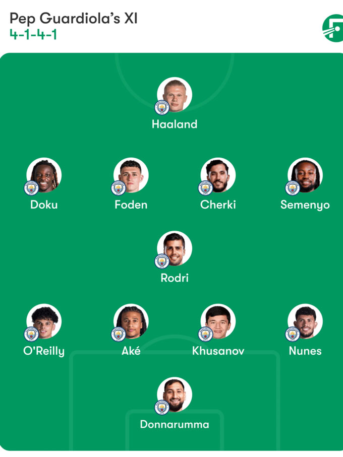 Điều này khiến Guardiola phải sử dụng các phương án thay thế ở hàng thủ, nhưng phần còn lại của đội hình vẫn giữ được chất lượng cao. Man City dự kiến sẽ sử dụng hệ thống 4-1-4-1 với Rodri đóng vai trò trụ cột ở tuyến giữa, hỗ trợ cho các tiền vệ sáng tạo phía trên.