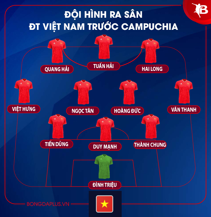 Có chăng ở vị trí cầu thủ chạy cánh trái, Việt Hưng thay vì Văn Vĩ lấy được lòng tin của HLV Kim Sang Sik. Trong khi đó, “mũi đinh ba” của ĐT Việt Nam cũng khá lợi hại. Tuấn Hải với thể trạng tốt nhất được thay cho Tiến Linh vẫn chưa có phong độ cao do chấn thương gần đây. Hỗ trợ cho Tuấn Hải là 2 cầu thủ thuộc diện kép chính của ĐT Việt Nam thời gian qua. Đó là Hai Long và Quang Hải.