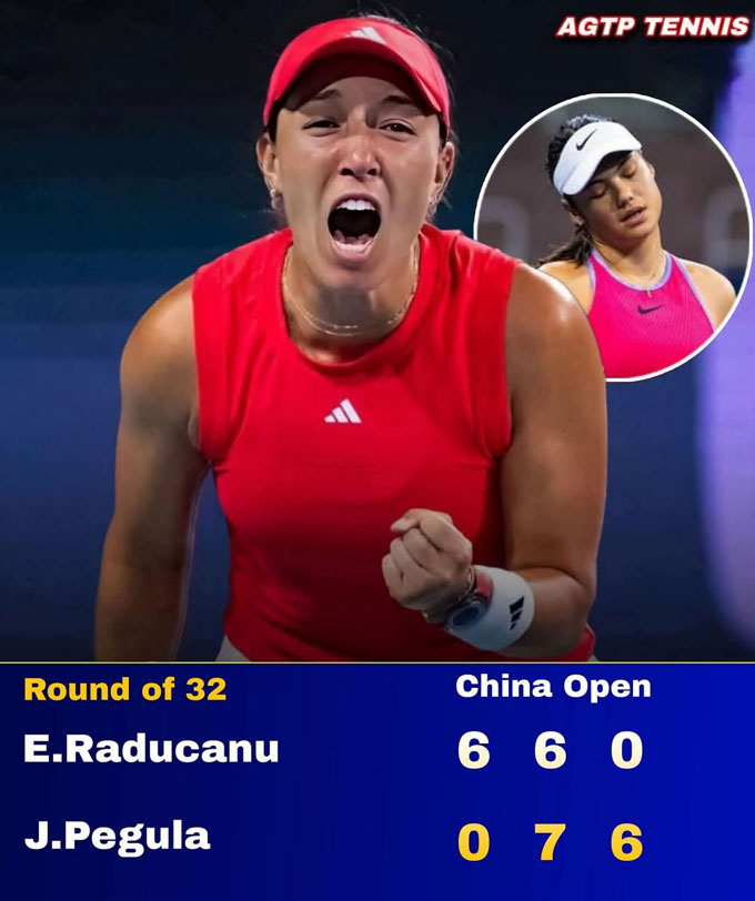 Raducanu, hiện xếp hạng 32 thế giới, thắng set đầu trước tay vợt số 7 thế giới Pegula. Nhưng sang set hai, cả hai bắt đầu giằng co quyết liệt. Pegula vốn nổi tiếng điềm tĩnh cũng phải hét lên vì bực tức và ném vợt xuống sân trong game thứ năm.