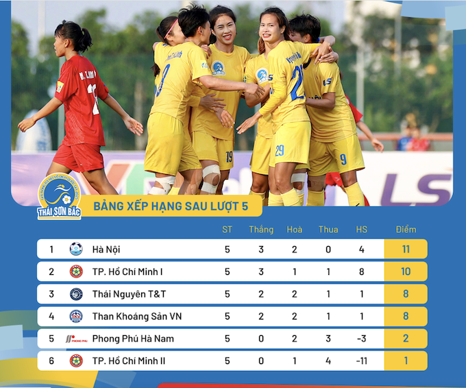 Trong khi đó, Thái Nguyên T&T và Than KSVN đang cùng có 8 điểm, nhưng Thái Nguyên T&T xếp trên nhờ hơn hiệu số. Thực tế, đội bóng xứ trà đang được kỳ vọng rất cao ở ngôi vô địch, nhưng sự thể hiện của Bích Thùy và các đồng đội vẫn chưa như mong đợi.