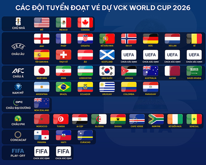 Tính tới thời điểm hiện tại, FIFA đã xác định 42/48 đội tuyển tham dự VCK World Cup 2026.