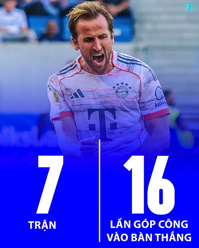 Ở tuổi 32, Kane đã tham gia vào 11 bàn thắng chỉ trong 4 trận Bundesliga, một thành tích đáng kinh ngạc cho một cầu thủ tưởng như đang bước vào giai đoạn cuối sự nghiệp. Tính rộng ra, anh góp công vào 16 bàn sau 7 trận trên mọi đấu trường.