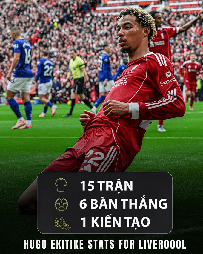 Anh mở T khoản bàn thắng ngay trong trận ra mắt gặp Crystal Palace, sau đó tiếp tục lập công ở lần đầu tiên thi đấu tại Anfield khi đối đầu Bournemouth. Tính đến thời điểm hiện tại, Ekitike đã có 6 bàn thắng sau 15 trận trên mọi đấu trường, con số đáng nể đối với một tân binh ở Premier League.