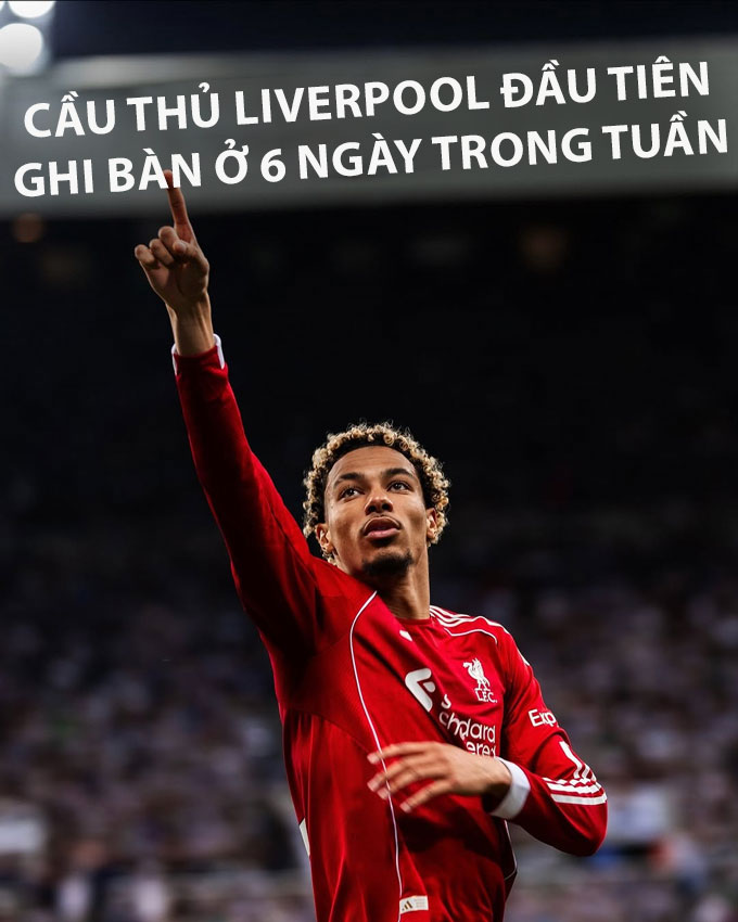 Điều thú vị là cả 6 bàn thắng này đều được ghi vào 6 ngày khác nhau trong tuần, một kỷ lục “có một không hai” trong lịch sử Liverpool. Theo thống kê của Owen Collins trên nền tảng X (Twitter), kỷ lục trước đó là 5 ngày khác nhau, do Ray Houghton và Dejan Lovren đồng nắm giữ. Ekitike hiện chỉ còn thiếu duy nhất… ngày thứ Năm để hoàn tất “bộ sưu tập” kỳ lạ này.