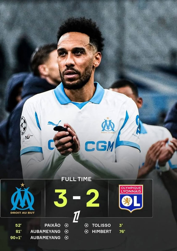 Aubameyang ghi liền hai bàn trong 15 phút cuối, ấn định màn ngược dòng cảm xúc thắng 3-2 và giúp đội chủ sân Velodrome chấm dứt chuỗi 4 trận không thắng, đồng thời rút ngắn khoảng cách với Lyon (đội xếp thứ 3) xuống còn 2 điểm.