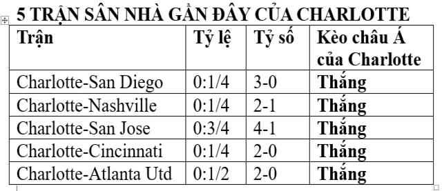Charlotte thắng theo châu á cả 5 trận sân nhà gần đây. Họ chấp New England 3/4 trái trong trận cầu lúc 06h15 sáng mai ở giải MLS. Trong 11 trận MLS gần nhất trên sân khách khi được chấp 3/4 đến 1 ¼ trái, thành tích theo châu á của New England là thắng 1, hòa 1 và thua 9. Charlotte sẽ thắng theo châu á ở trường hợp này.