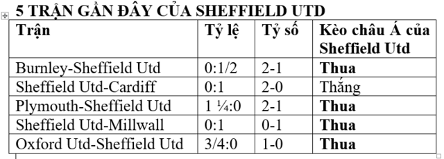 Như vậy Sheffield Utd không chỉ thua theo châu á 4/5 trận gần đây mà đồng thời còn đã hết động lực.