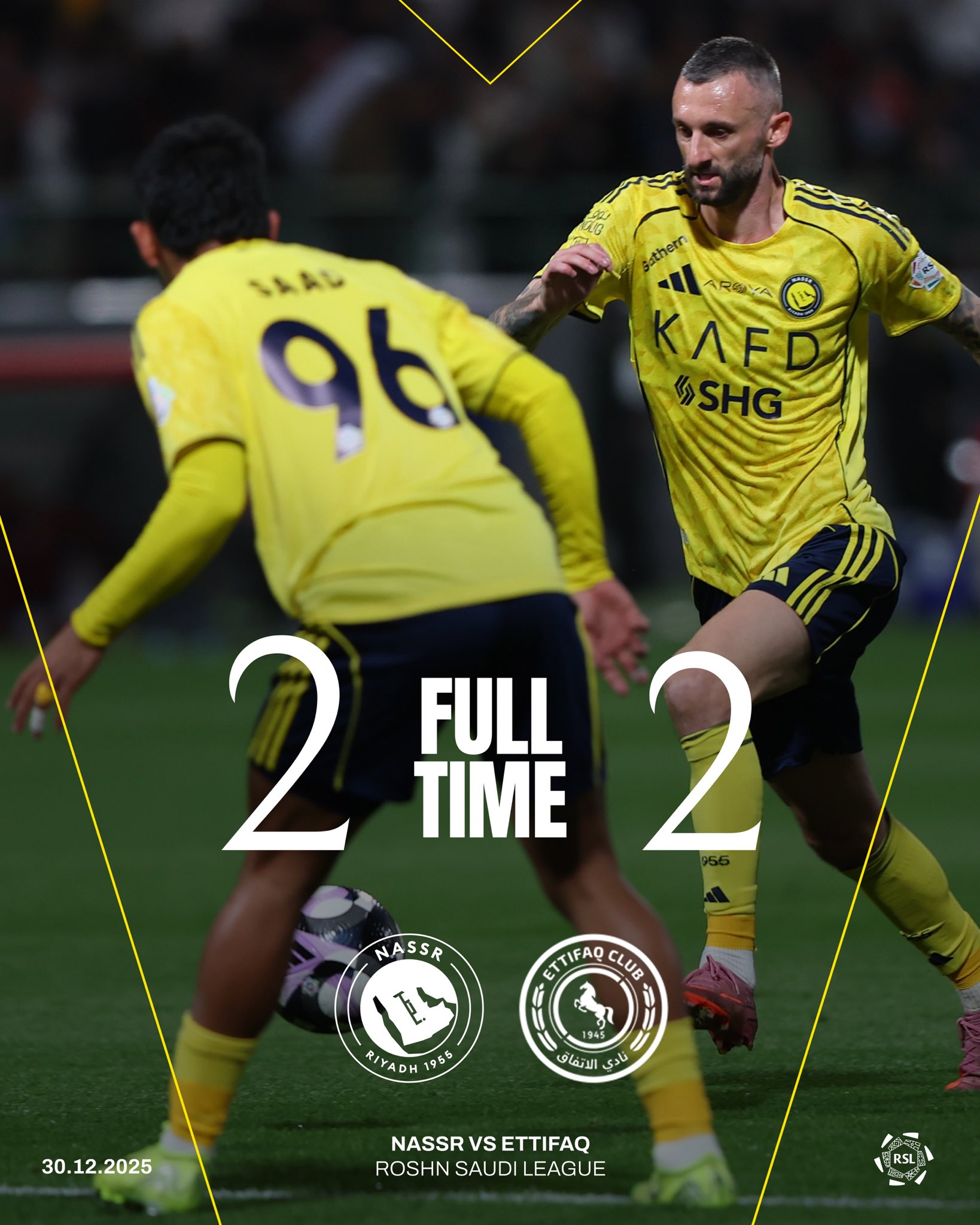 Kết quả Al Ettifaq 2-2 Al Nassr: Al Nassr kết thúc năm 2025 với ngôi đầu bảng