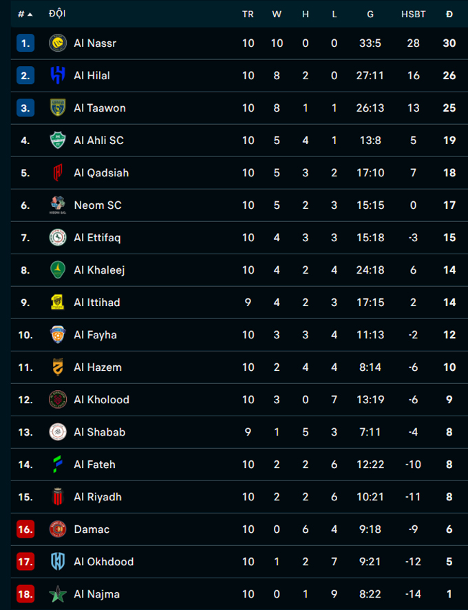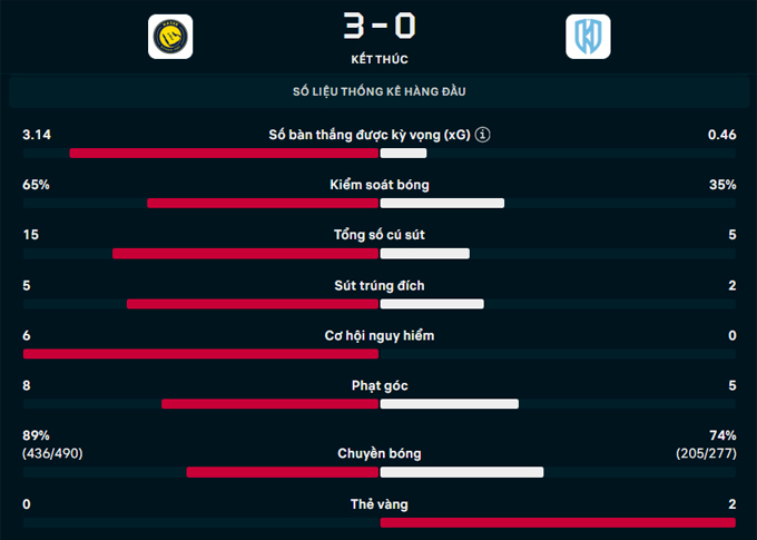Kết quả này giúp đoàn quân của HLV Jorge Jesus củng cố ngôi đầu khi duy trì chuỗi 10 trận toàn thắng tại Saudi Pro League 2025/26 với 30 điểm tuyệt đối. Ngoài ra, họ còn tái lập cách biệt 4 điểm với đội xếp sau Al Hilal.