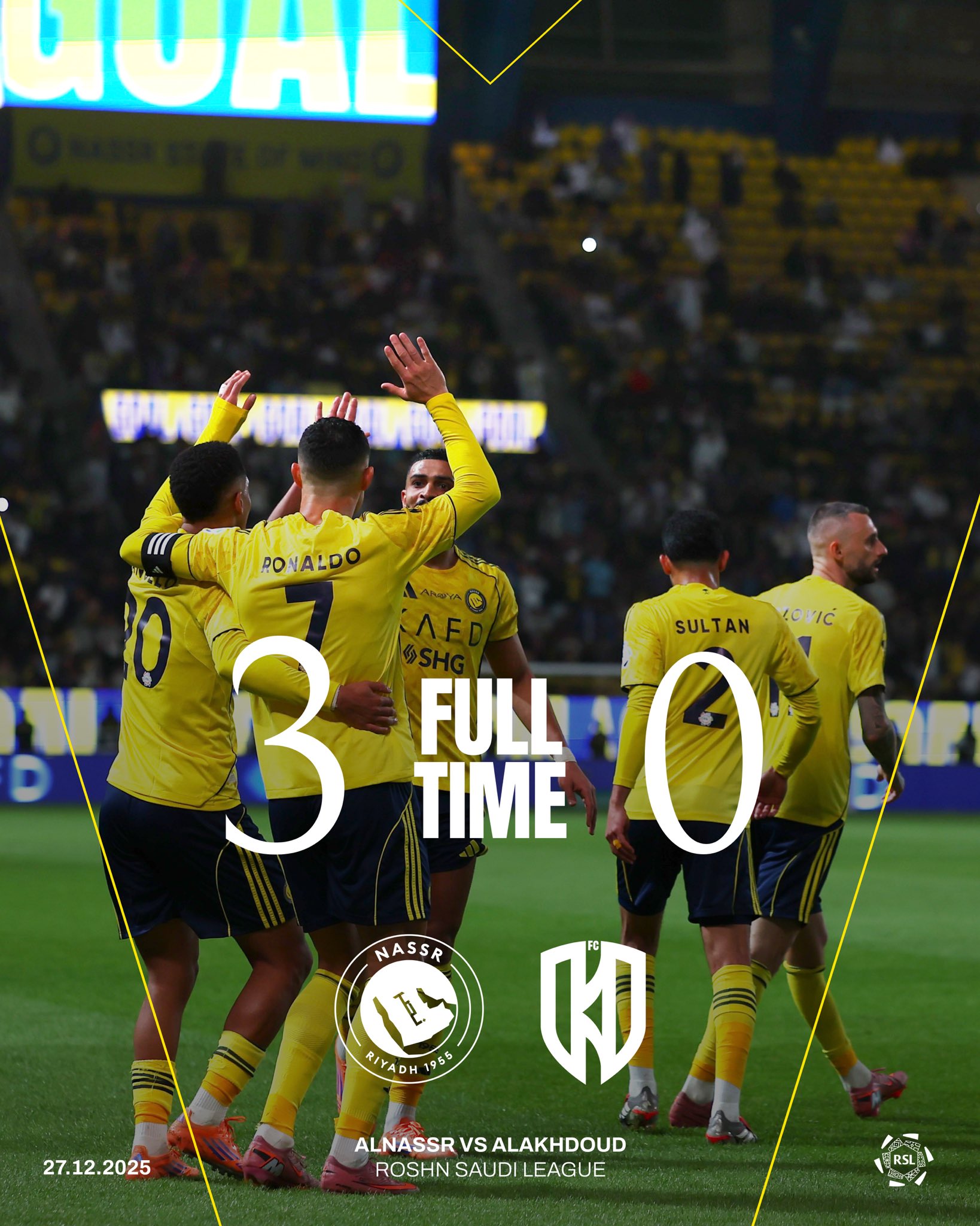 Al Nassr: Al Aqidi, Al Ghannam, Martinez, Al Amri, Boushal, Wesley, Angelo, Brozovic, Coman, Felix, Ronaldo