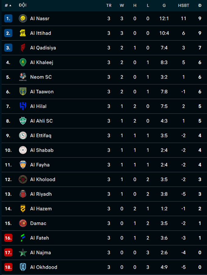 Đội hình thi đấu Al Nassr vs Al Riyadh