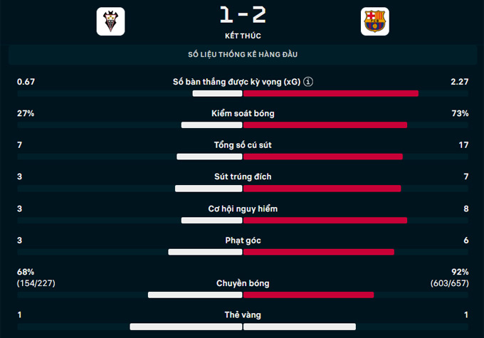 Ở trận đấu giữa Albacete vs Barca tại cúp Nhà Vua 2025/26, đội khách dù gặp nhiều khó khăn nhưng vẫn xuất sắc giành thắng lợi với tỷ số 2-1 để giành vé đi tiếp.