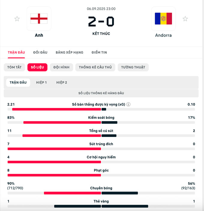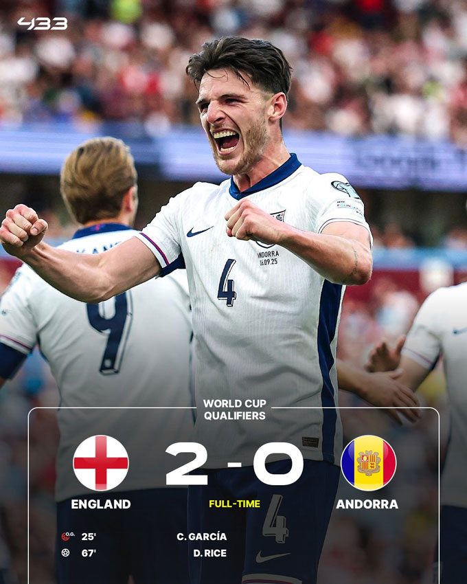 Những phút còn lại, ĐT Anh có thêm một vài cơ hội nhưng không tận dụng được. Chung cuộc, Tam sư giành chiến thắng 2-0 trước Andorra tại vòng loại World Cup 2026.