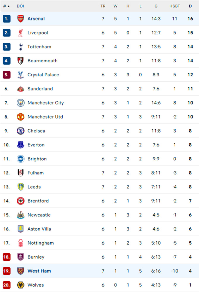 Chiến thắng quan trọng này giúp Arsenal vươn lên chiếm đỉnh Premier League với 16 điểm, đồng thời gây áp lực lớn lên Liverpool - đội sẽ đại chiến với Chelsea ở vòng đấu này. Nếu The Reds không thể hạ The Blues, ngôi đầu sẽ chính thức thuộc về Arsenal trước đợt FIFA Days tháng 10.