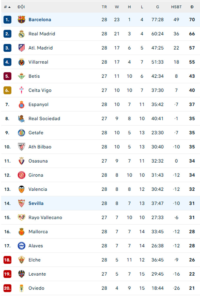 | La Liga - Vòng 34 | |||