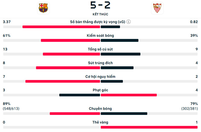 Những nỗ lực của Sevilla chỉ giúp họ ghi thêm một bàn nhờ công của Sow ở phút 90+2. Chung cuộc, Barca vượt qua Sevilla 5-2 để khẳng định sức mạnh.