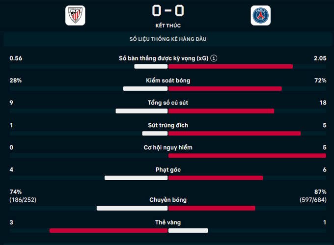 Kết quả Bilbao 0-0 PSG: ĐKVĐ gây thất vọng