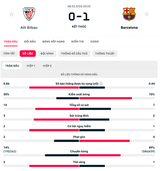 Bàn thắng này khiến Bilbao mất đi phần nào sự hưng phấn đã thể hiện trước đó. Trong khi đó, Barca thi đấu rất chắc chắn ở những phút còn lại, kiểm soát thế trận và không để đối thủ tạo ra nhiều cơ hội nguy hiểm.