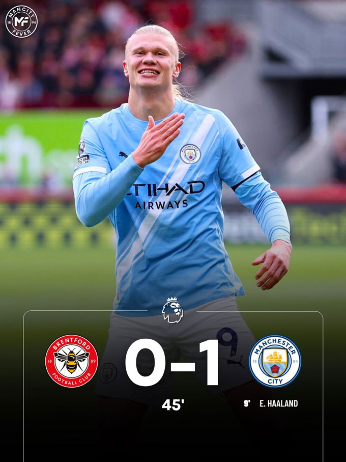 Ở đấu trường Ngoại hạng Anh, bàn thắng duy nhất của tiền đạo Erling Haaland đã giúp đội khách giành trọn 3 điểm. Chiến thắng giúp Man City tạm thu hẹp khoảng cách với nhóm đầu. Hiện Man City đang đứng thứ 5 trên BXH với 13 điểm sau 7 trận còn Brentford có mặt ở vị trí thứ 16 khi có 7 điểm.
