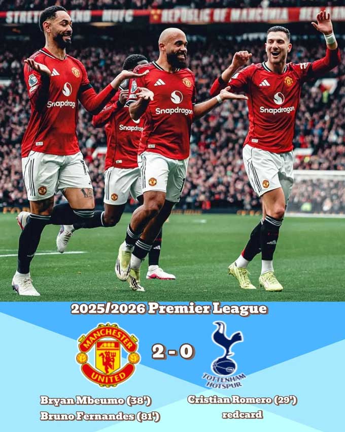 Tại vòng 25 Premier League, MU đánh bại Tottenham với tỷ số 2-0 để củng cố vững chắc vị trí trong top 4. Trong khi đó, Spurs vẫn ngụp lặn ở nửa sau BXH.