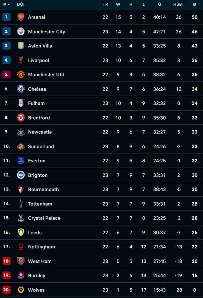 | TT | Đội bóng | Trận | +/- | Điểm |