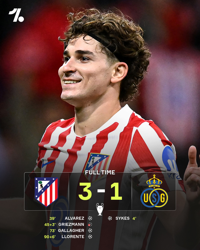 Một đội bóng lớn khác cũng có chiến thắng đậm là Atletico Madrid. Đội bóng Tây Ban Nha đánh bại Union St.Gilloise với tỷ số 3-1 nhờ các bàn thắng của Alvarez, Gallagher và Llorente. Bàn duy nhất của đội khách được ghi do công của Sykes.